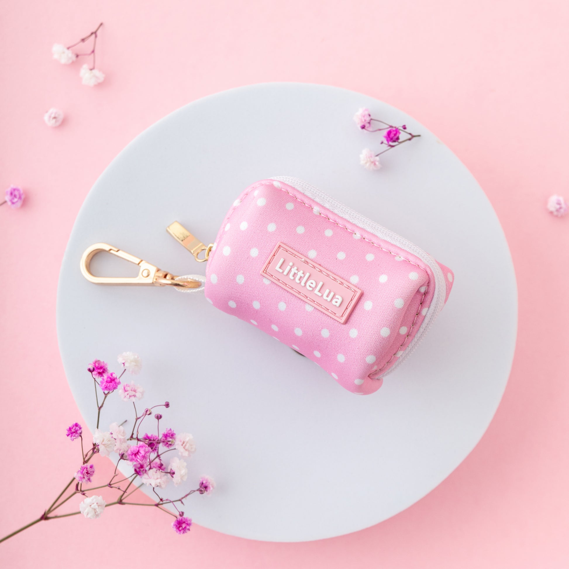 A lightweight poop bag holder that clips easily onto your leash, keeping essentials close while staying coordinated with your set.